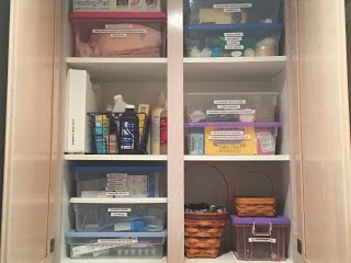 I pulled out all of the expired over the counter remedies, half empty lotions and potions bottles,  old makeup that I will never use...you get the idea.